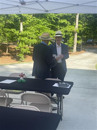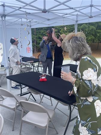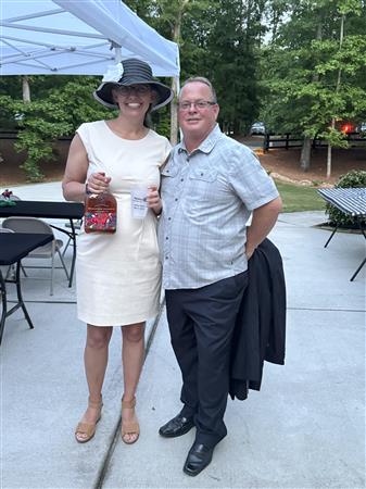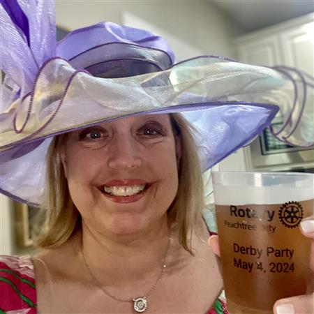 Thanks to new member, Glenn Rebman and his wife, Mary Alice, for setting up the wagering and purchasing the gifts from Churchill Downs a few weeks ago (including a custom Peachtree City Rotary bourbon bottle) to make it even more fun!
